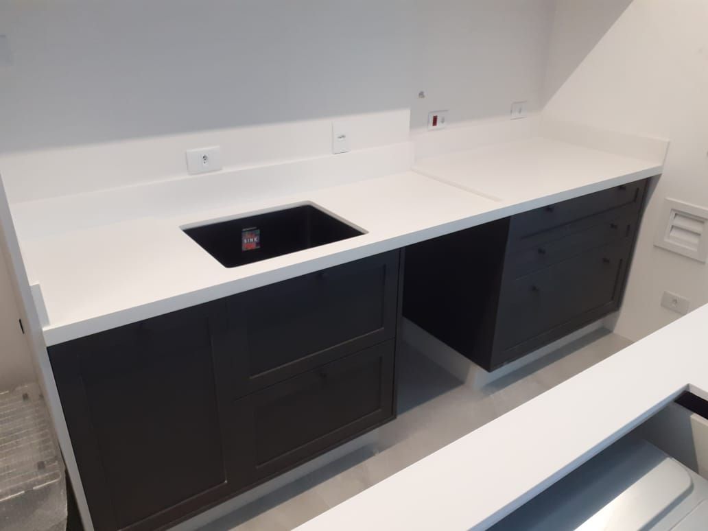 O quartzo branco é um material de bancada altamente popular, especialmente em Curitiba, conhecido por sua estética moderna e suas características de alta performance. Diferente de uma pedra natural como o mármore ou o granito, o quartzo é um material industrializado (ou superfície composta).